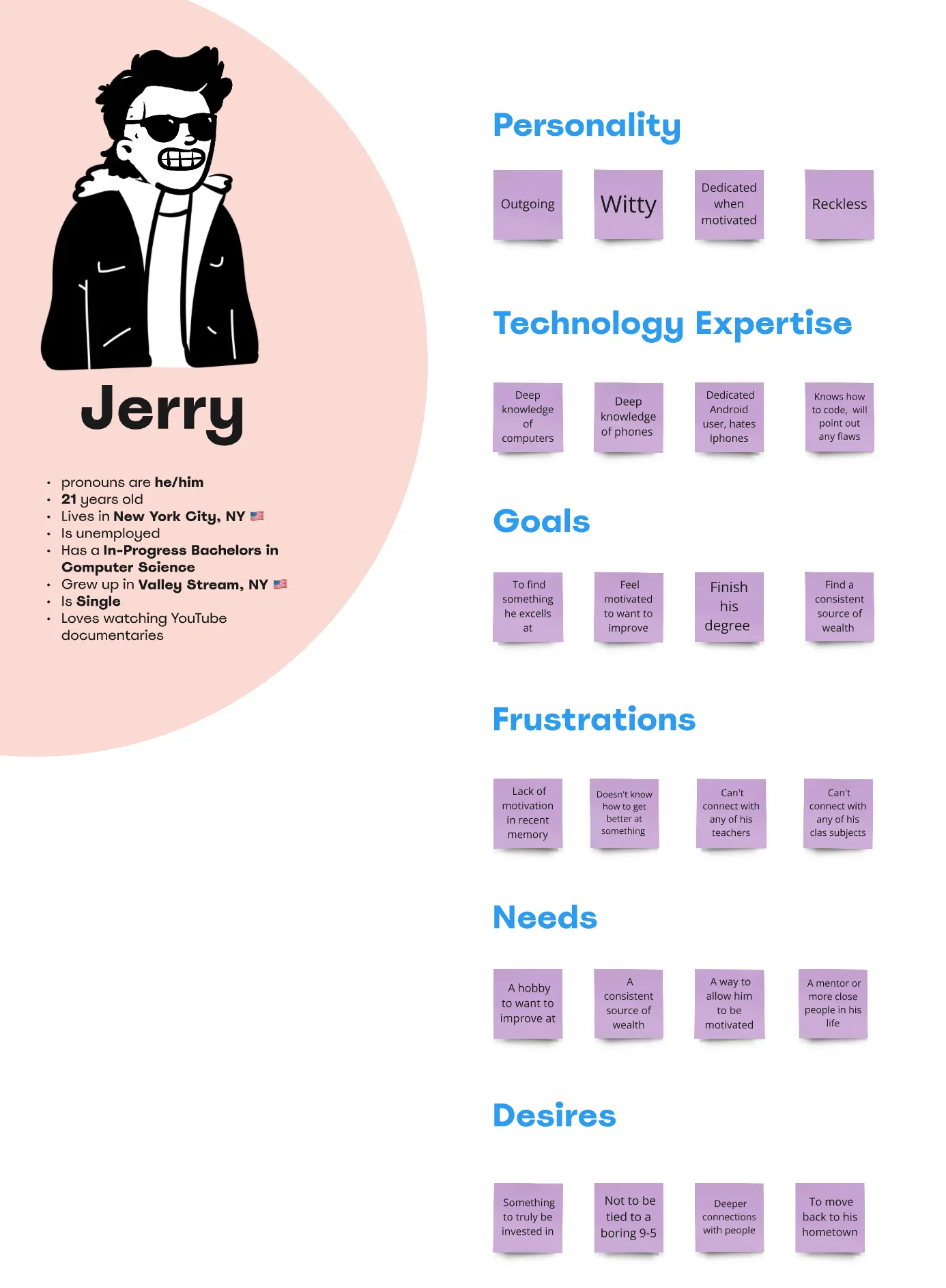 I started my ideation by creating user personas for people that might use this website (with this being at the very beginning of my ideation that are not fully accurate to a user-base of the website)